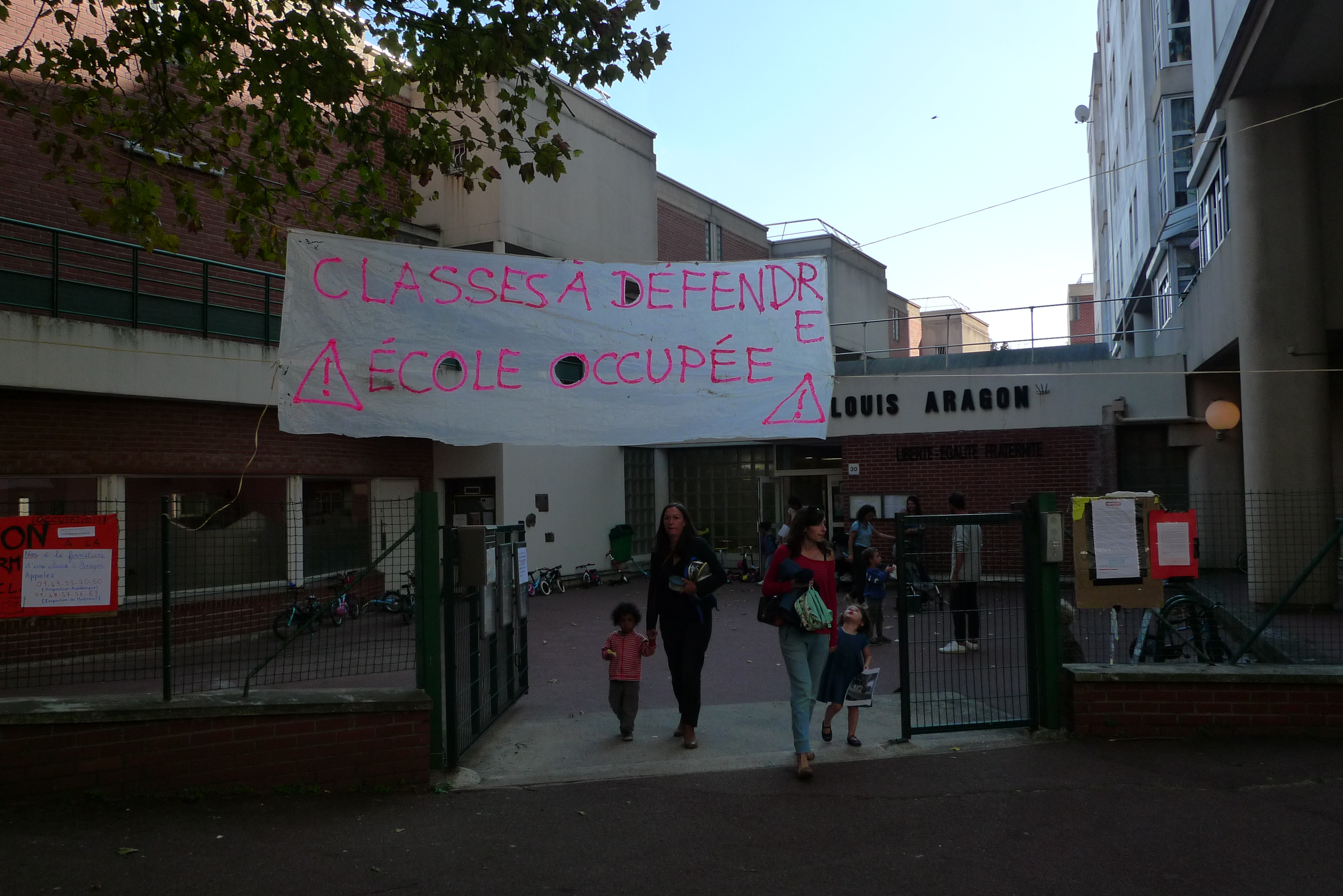 Les parents d’élèves des 5 classes de la maternelle Aragon ont appris, le 6 septembre, cette fermeture qui perturbe fortement ces très jeunes enfants, désorganise toute la structure de l’école une semaine après la rentré et fait monter à 27 le nombre d’enfants par classe !